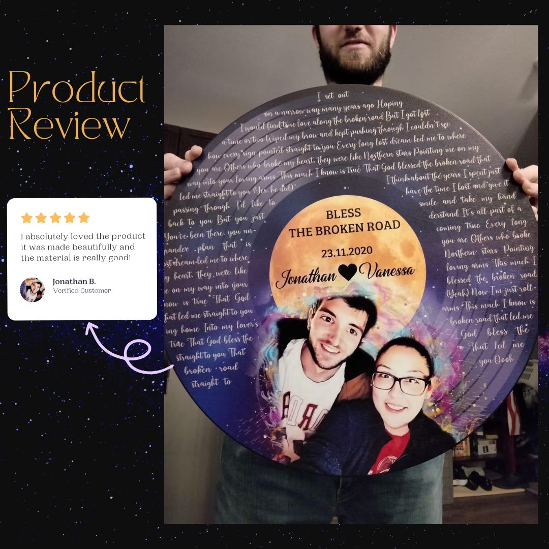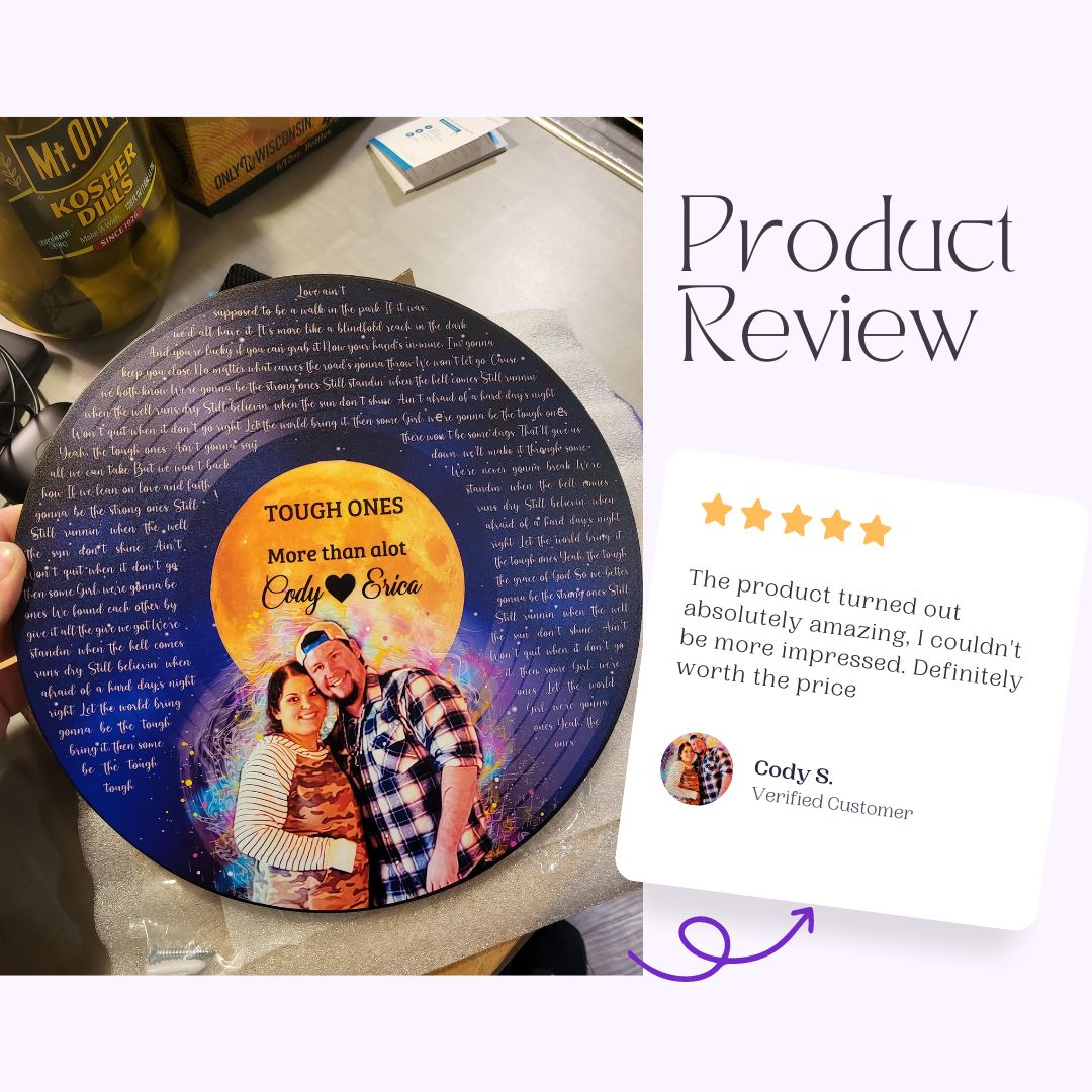 Simply enter your song name, lyrics, and any custom text in the personalization box on the product page. You can also upload photos if the design allows. Our design team will handle the rest.