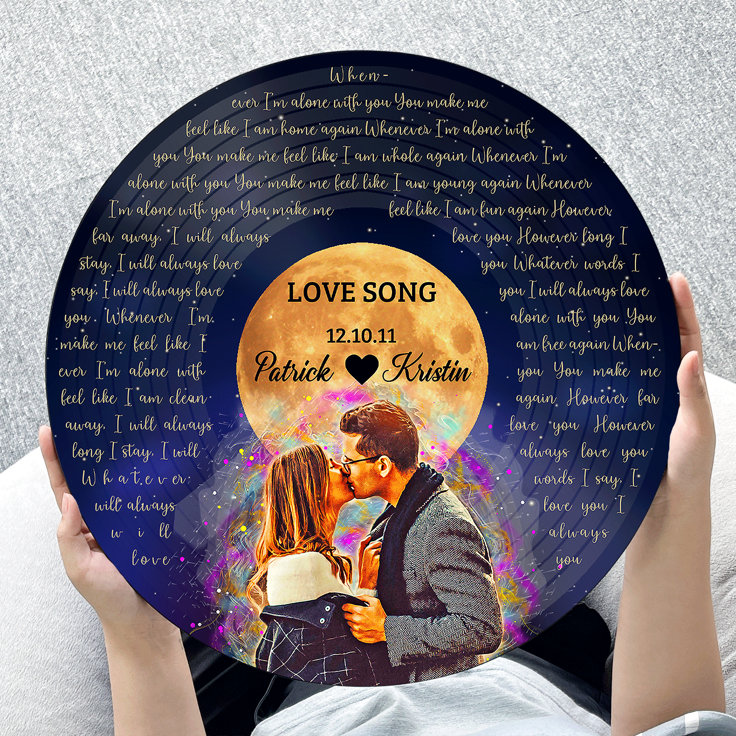 Personalized Song Lyrics and Portrait Round Wood Sign - Star Wave Style