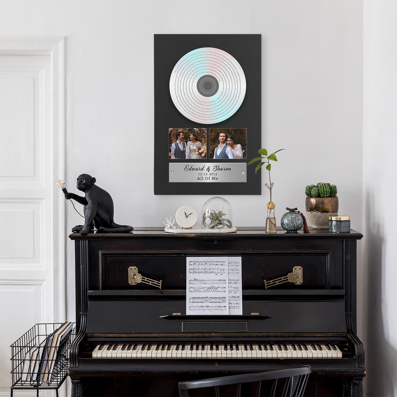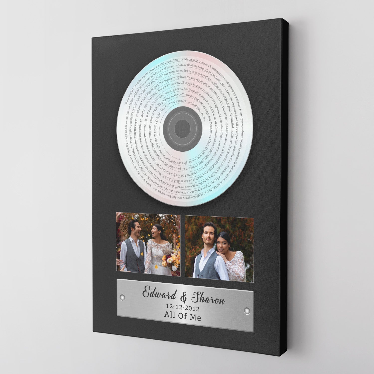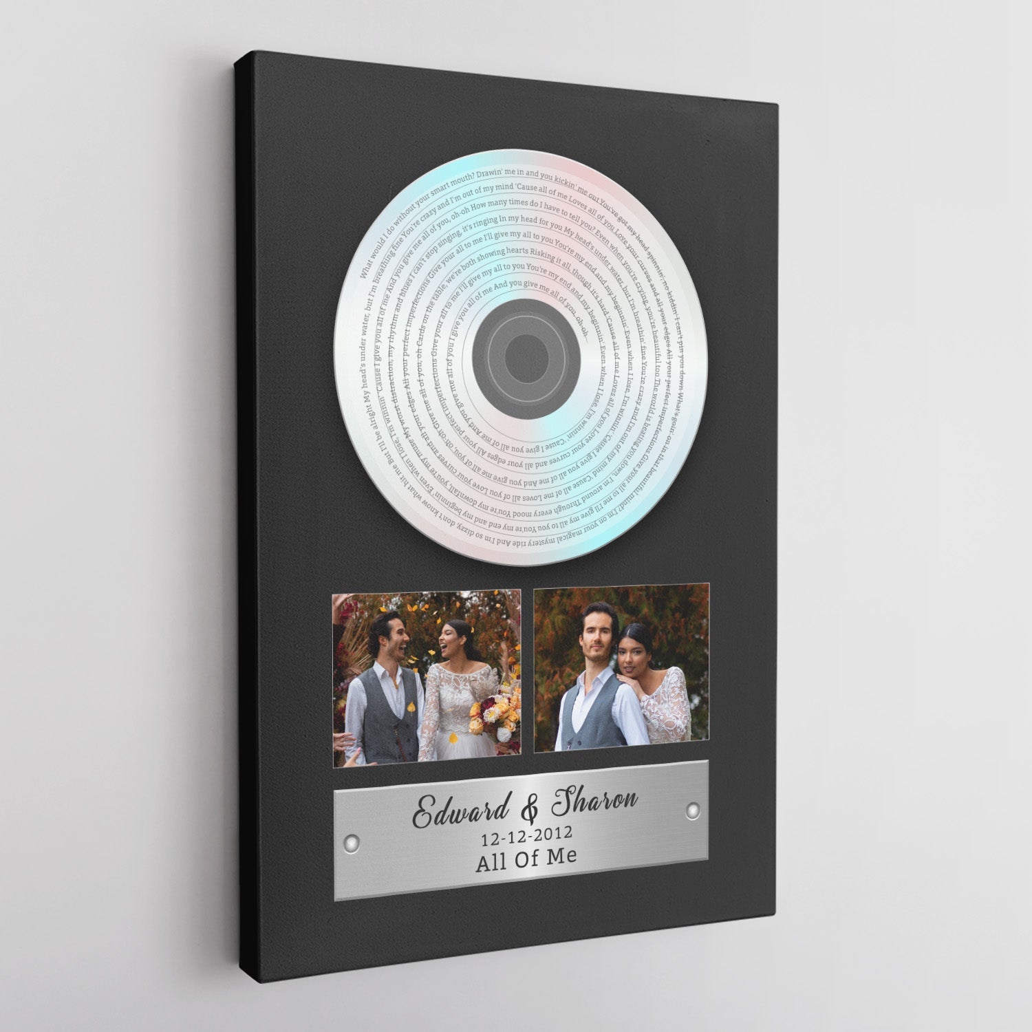 Custom Song Lyrics, Upload Photo, 2 Pictures, Customizable Text Vinyl Record Canvas