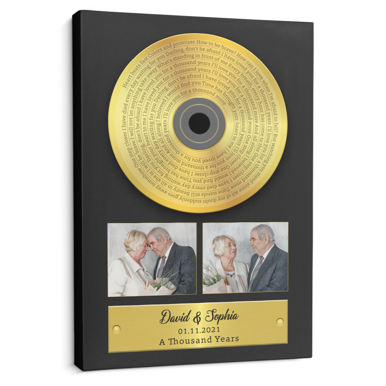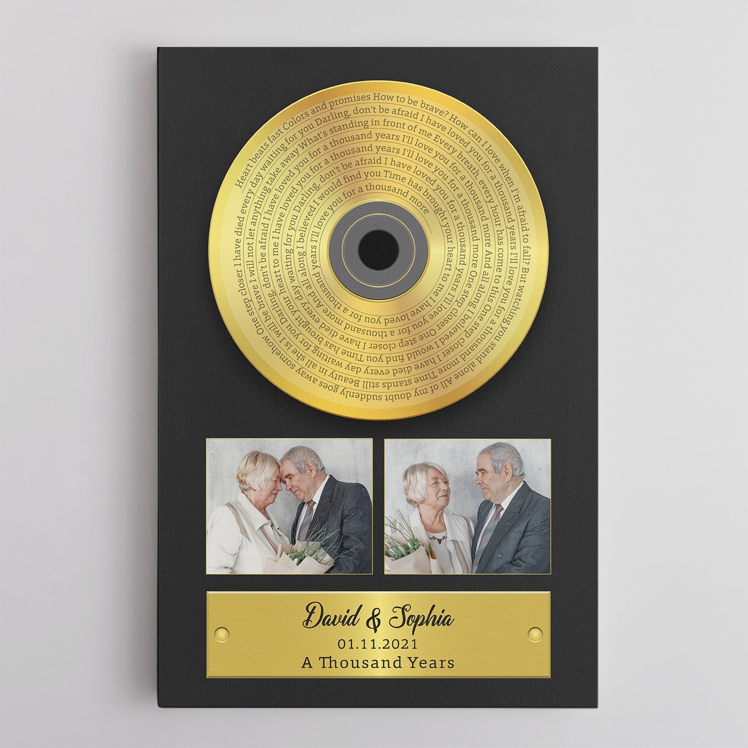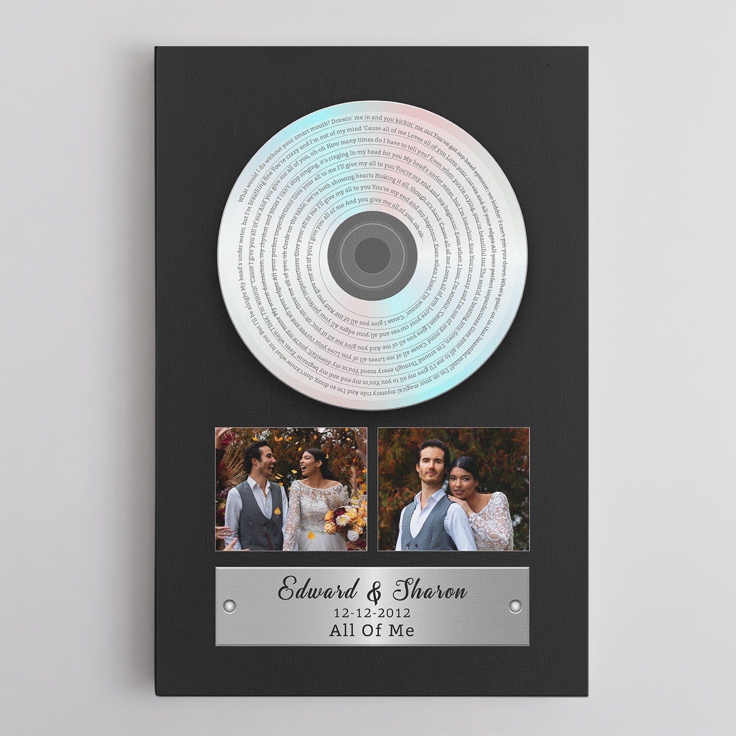 Custom Song Lyrics, Upload Photo, 2 Pictures, Customizable Text Vinyl Record Canvas