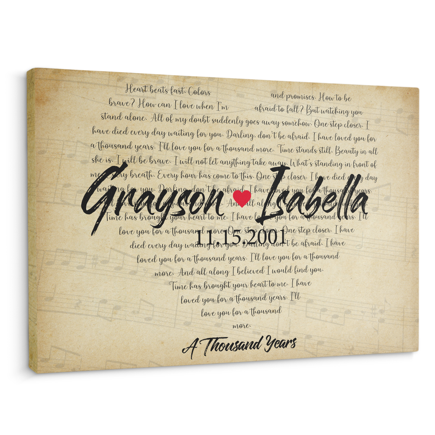 Custom Song Lyrics Art, Customizable Song, Name, Photo Canvas Wall Art